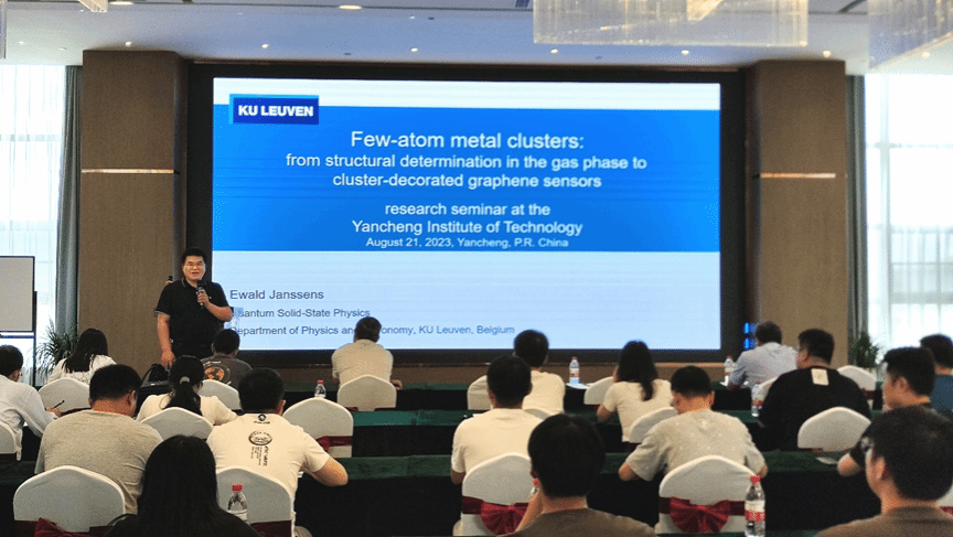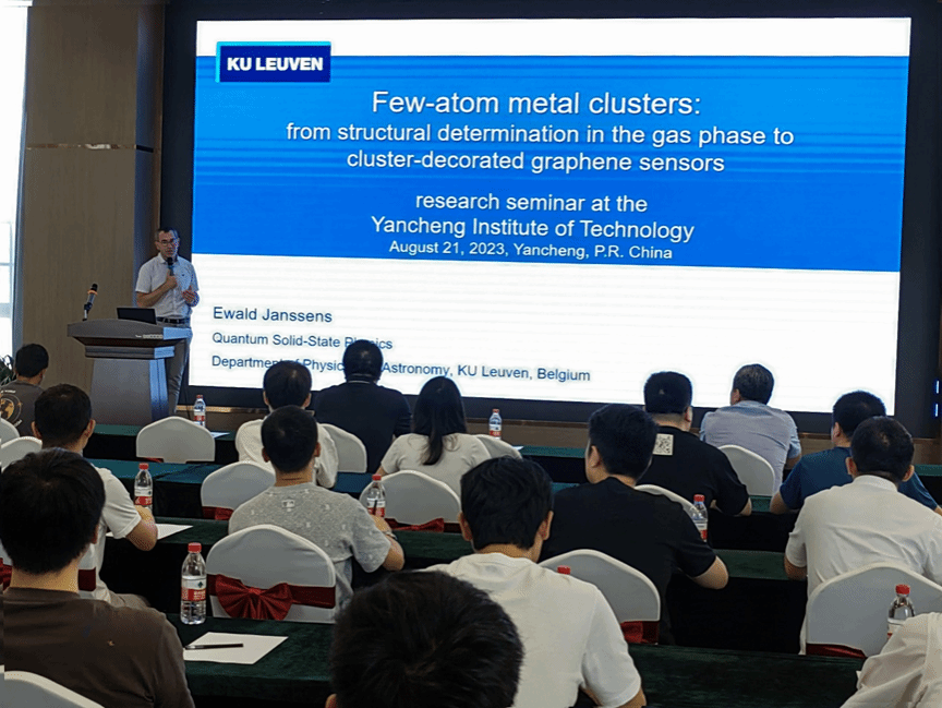 8月20日至21日,比利时荷语鲁汶大学Ewald Janssens教授来盐城工学院进行访问及合作交流。期间,举行了合作交流会并签订共建国际联合实验室合作协议、参观了微纳功能材料研究所相关实验平台、举办了学术报告会。盐城工学院党委常委、副校长、微纳功能材料研究所所长张勤芳教授出席并主持报告会。